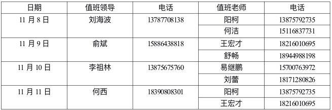 十九届六中全会期间值班安排表
