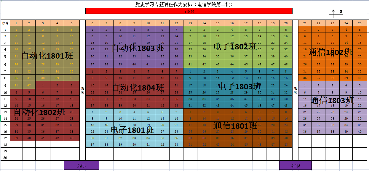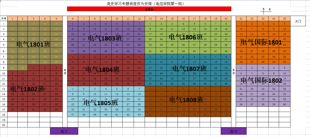 根据湖南省教育厅《转发教育部办公厅关于在思政课中加强以党史教育为重点的“四史”教育的通知》以及马克思主义学院《关于在2018级学生中开展党史学习专题讲座的函》等文件精神结合本院实际,现将我院2018级学生开展党史学习教育讲座时间、地点及班级安排见附表1,请各负责人按照附表1组织安排好学生听课,各班座次分布图见附表2,上课做好考勤工作。