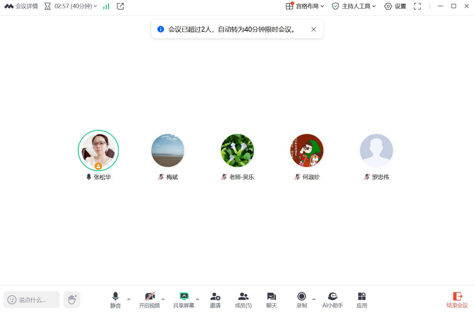 6月16日,电子信息教研室利用腾讯会议平台召开了2024-2025-2期末教研活动。会议由教研室主任张松华主持,全体教师参加。