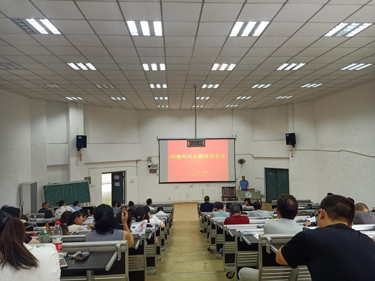 719日上午,电气与信息工程学院召开2020-2021-2学期期末全体教职工大会暨师德师风专题培训会议。电信学院全体教职工参会,会议由院长李祖林主持。