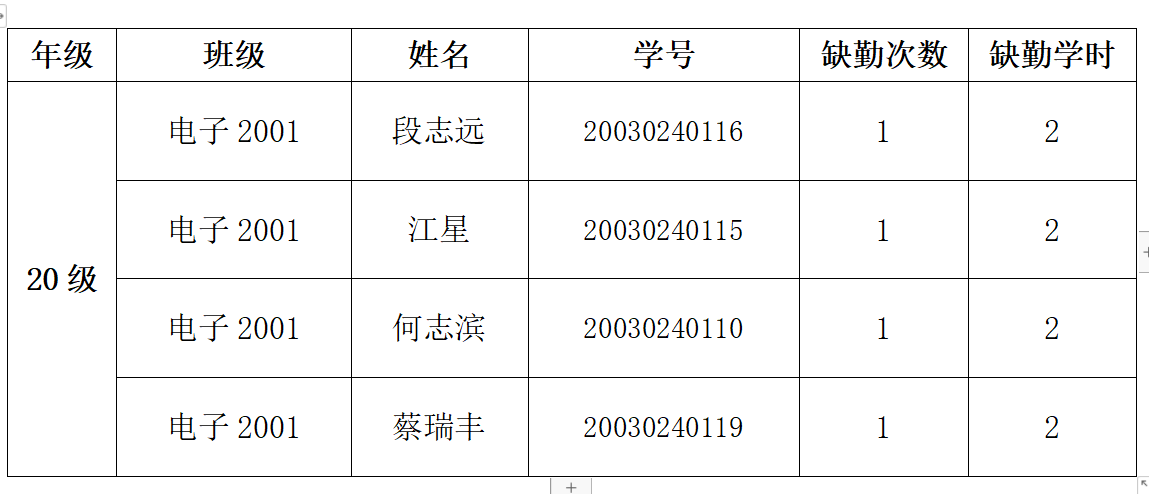 为建设学院学风环境,维持学院学风气氛,本部门按时收取了本周课堂考勤表与学生考勤表。现将考勤情况公布如下: