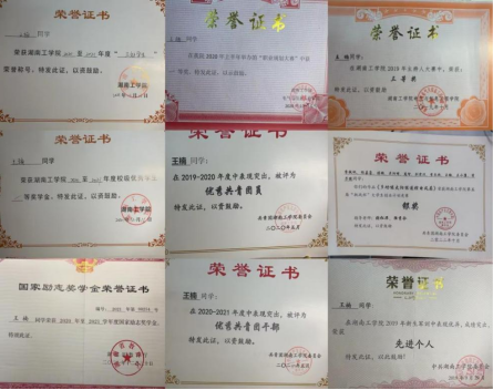 在校期间,学习成绩和综测分在专业上名列前茅,荣获国家励志奖学金、校级二等奖学金、校级三好学生、校级优秀学生干部、校级优秀团员干部等多个奖项。