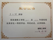 在校期间曾获得国家奖学金、国家励志奖学金、湖南省大学生电子设计竞赛二等奖、校级一等奖学金、校级三好学生、校级优秀学生干部等。