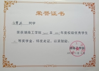 在校期间曾两次获得国家励志奖学金,两次校级优秀共青团员、两次校级三好学生、两次校级一等奖学金和校级三等奖学金。