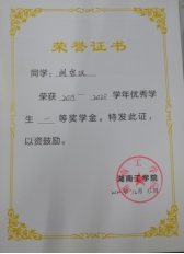在校期间曾获国家励志奖学金、校级一等奖学金、校级二等奖学金、校级三等奖学金、校级优秀学生干部等。