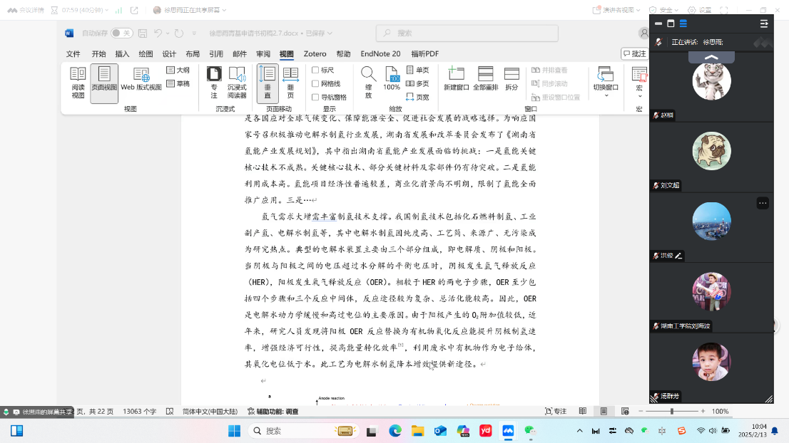2025年2月13日上午10点,电气与信息工程学院积极响应学校领导和科技处战略部署、并结合学院实际,组织全院博士开展了元宵节后的国家自然基金项目申请书打磨线上研讨会。学院洪俊院长和何西副院长会前精心安排,重点聚焦青年基金项目书质量提升打磨,兼顾面上项目打磨。