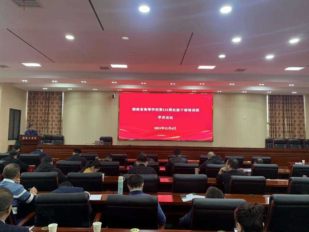 下午,湖南省高等学校第131期处干班举行了学员论坛。学员吴远志、王小虎分别以《深化校地合作 在服务地方经济发展中彰显高校担当——衡阳市第十二次党代会精神宣讲》《现代产业学院培育建设》为题作了主题发言和汇报。