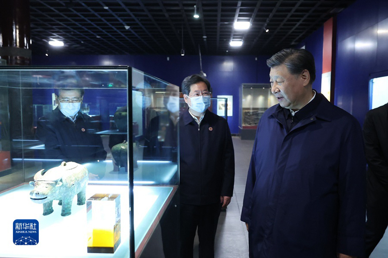 10月26日至28日,中共中央总书记、国家主席、中央军委主席习近平在陕西省延安市、河南省安阳市考察。这是28日下午,习近平在安阳市殷墟博物馆考察。(新华社记者 鞠鹏/摄)