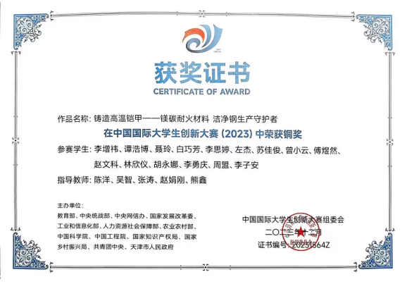 国赛铜奖:铸造高温铠甲——镁碳耐火材料洁净钢生产守护者