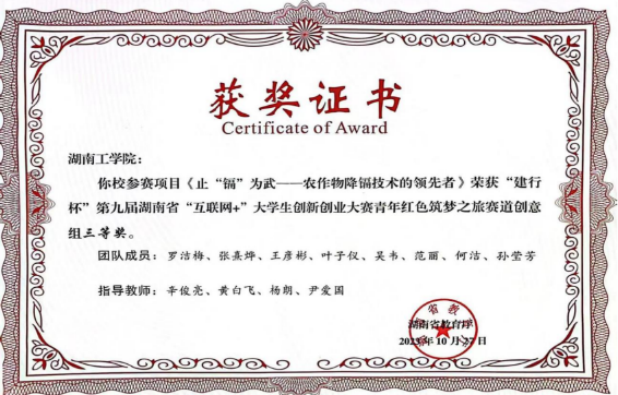 省赛三等奖:止镉为武项目------农作物降镉技术的领先者
