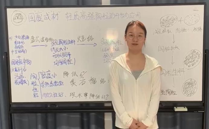 大一刚开始,我只是站在一旁看着学长对一些“粉”在那里“捣鼓”,称重,配制溶剂,在放到造粒机中滚成球型......这一切看似简单,但当我自己实际操作起来时,却总是问题频出,在配置溶剂时,要么太稀,要么太稠;在造粒时,要么加入溶剂的量太多,导致球型大小不统一,要么就是加入溶剂的量太少,导致无法成型。但好在熟能生巧,在不断的学习下,我已能将陶粒产品制出。我看着一颗颗圆润的陶粒,就像是农民秋收时看着自家田野里被压弯的水稻,内心充满着喜悦。后来,学习了专业知识,看待陶粒时我便有了自己的理解与研究,陶粒的各项性能提上去了,但如果想要未来被广泛应用,被大众接受的话,那么势必要将成本降低,正当我为此发愁时,学校废弃的荒地便让我有了新思路,“要说便宜,还有比随处可见的黄土更实惠的吗!黄土能行吗?”我带着这样的疑问去找熊老师,在与熊老师的探讨和帮助下,我们决定尝试以黄土,淤泥等一系列固体废弃物为原料去制备,最后的结果也没有让我们失望,证实了想法的可行性。在熊老师的带领下,申获发明专利——调控陶粒结构特征和力学强度的方法、类石榴结构轻质高强陶粒及其制备方法,并于《建筑材料学报》发表论文一篇,也让我明白了灵感来源于生活,也正如习总书记所说“不论学习还是工作,都要面向实际、深入实践,实践出真知”。