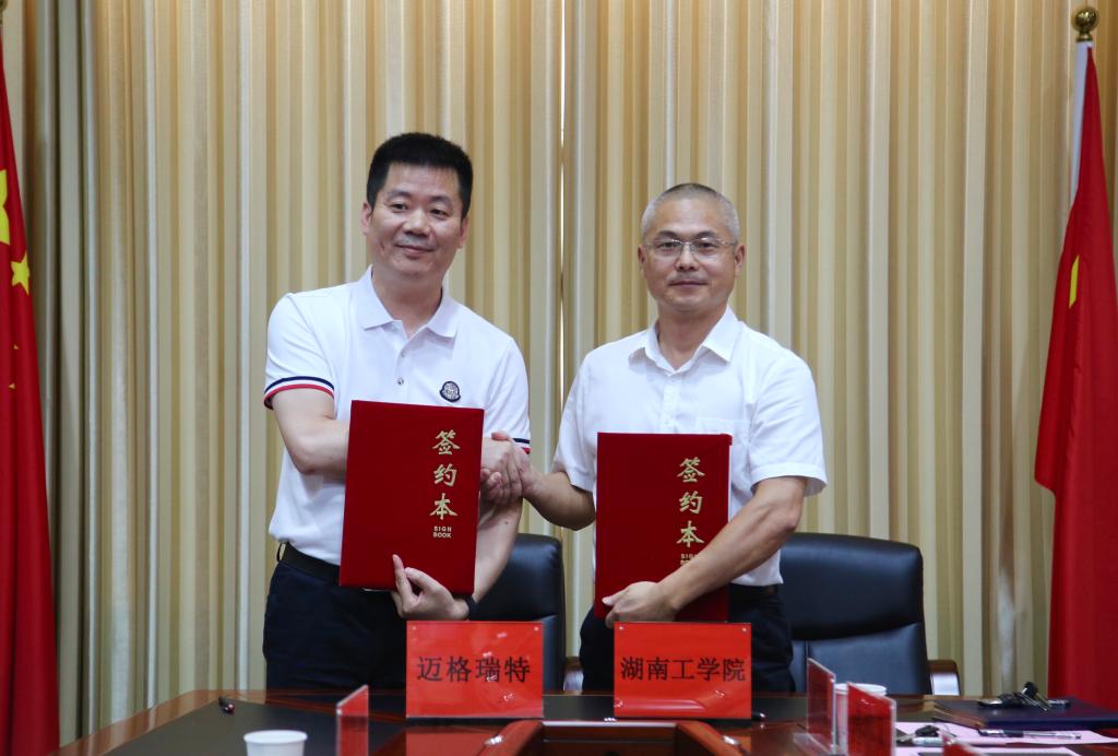 在与会领导和嘉宾的共同见证下,英国上市公司官网365校长罗建华与湖南迈格瑞特物联科技有限公司签署了校企战略合作协议。校党委副书记张平代表学校签署了捐赠协议。