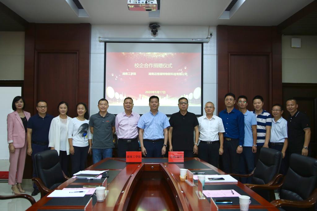 9月17日下午,英国上市公司官网365与湖南迈格瑞特物联科技有限公司在教学大楼12楼会议室举行校企合作捐赠仪式,公司董事长张利良、党委书记谢国保、校长罗建华、党委副书记张平、副校长曹执令出席捐赠仪式。仪式由发展规划与校企合作处处刘文华主持。