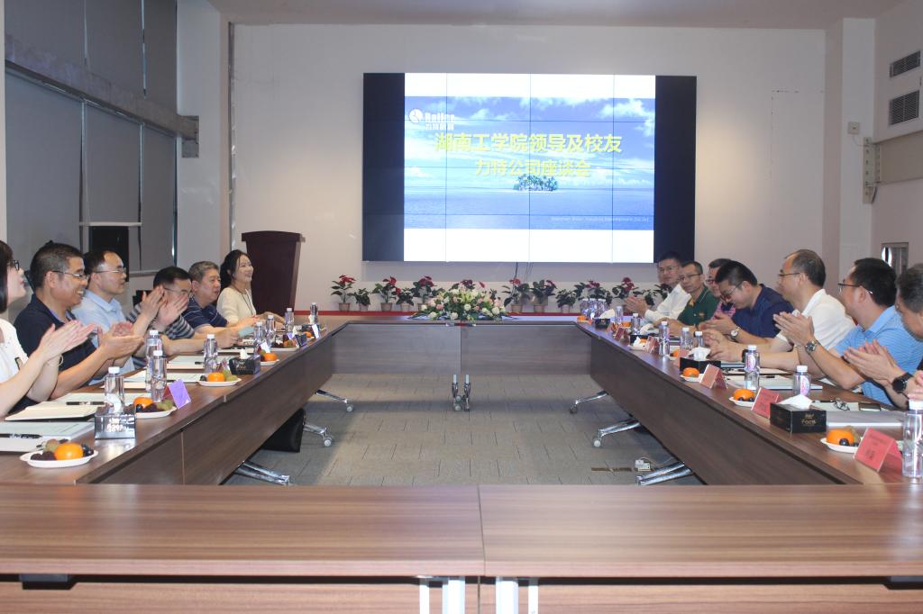 在考察过程中,何建雄一行在深圳市力特实业发展有限公司召开了校友座谈会。他代表校党委、行政向各位校友们问好,并向校友们介绍了学校近年来在人才培养、科学研究、产教融合方面所取得的成绩。何建雄指出,校友和母校既是一个情感共同体,更是一个发展共同体,一个学校的社会地位和影响力的高低,很多时候是由校友这张名片打造的,校友是母校发展中一支不可或缺的重要力量,希望校友们继续关注和支持母校的发展,多提意见建议,尤其在人才培养、产教融合和校友交流模式方面给予母校大力支持。