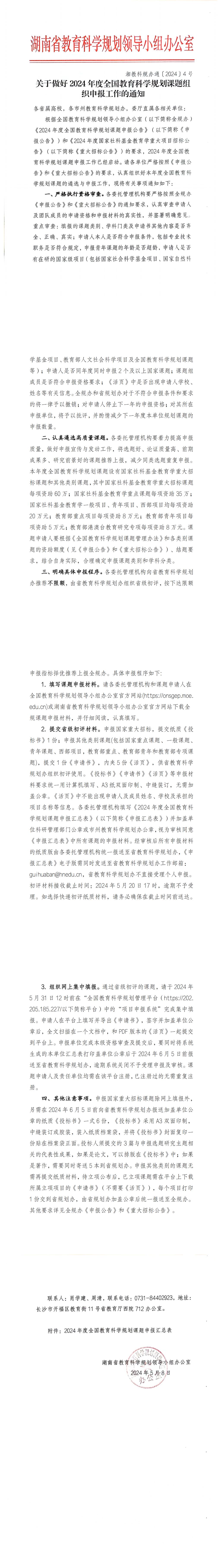 关于做好2024年度全国教育科学规划课题组织申报工作的通知