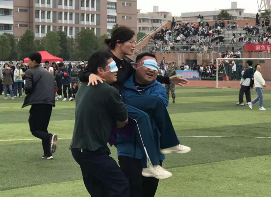 每个人心中都有一个童年。两人三足心有灵犀盲人抬花轿托乒乓球跑这些充满了趣味性、娱乐性和观赏性的比赛项目,吸引了一群爱玩的“大孩子”。走出办公室、实验室,走下讲台,走向操场的老师们全身心地投入到这些比赛项目中,抱、、赶、跳,哪怕是再简单的一个动作,他们也都是全力投入,赛场上沸腾了,加油声不断,场上充满老师们的欢声笑语,每个人的脸上都洋溢着喜悦和欢乐