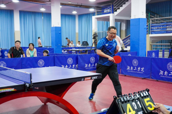 赛场上,老师们每球必争,敢打敢拼,不畏强敌,推、拉、搓、削、挡,长短球结合,下旋、弧圈、侧旋,划出一道道美丽的弧线。充分展现了奋力拼搏、攻坚克难的国球精神。