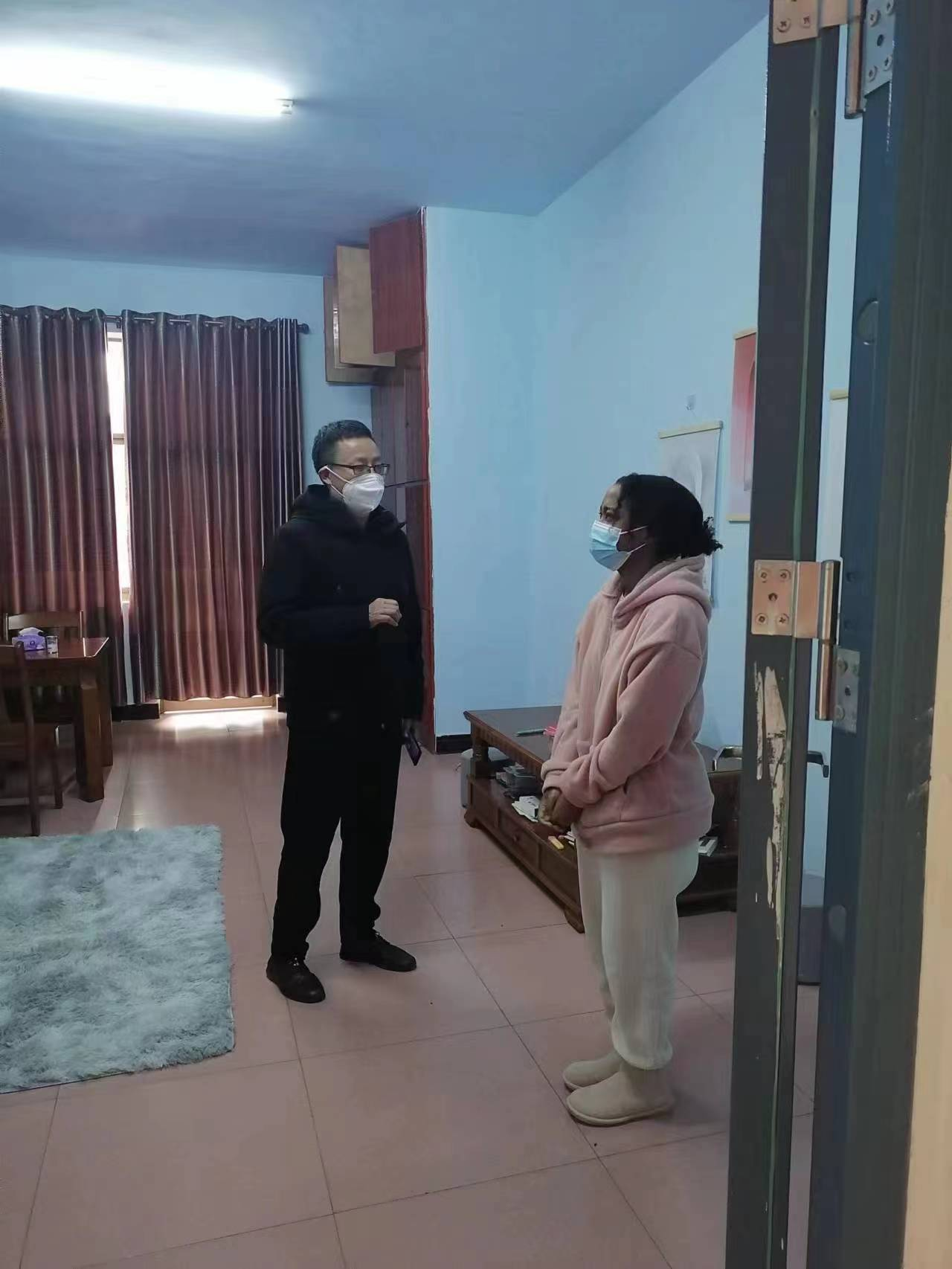 新春佳节来临之际,1月21日是中国传统大年三十,当天下午国际合作交流处处长兼国际教育学院院长陆秀令来到外教公寓,走访看望假期留校外教,了解外教假期留校期的工作和生活情况,向外教介绍中国春节由来、中国春节习俗,向外教致以新春的问候与祝福,并送上春联和水果等节日礼品。留校外教表示,虽然身在异国他乡,不能回国和家人团聚,但学校送来的深情牵挂和春节礼物让他们倍感温暖、亲切和幸福,让他们真真正正感受中国传统文化的节日春节,领略中国文化习俗的魅力,感受湖工这个大家庭的温暖。(文/王扬子,一审/邹莉 ,二审/彭艳 ,三审/陆秀令)