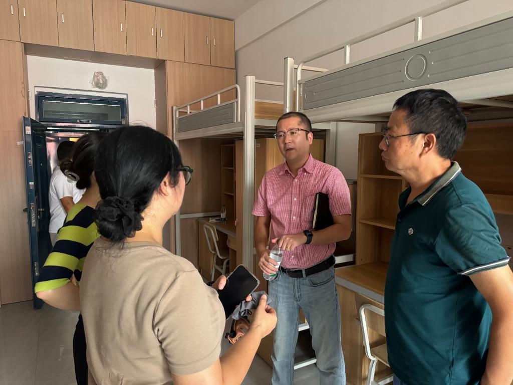 为迎接英国上市公司官网365首批国际学生,9月19日上午,由副校长柳星带队,国际合作交流处处长陆秀令、国际教育学院副院长彭艳以及学生工作部副部长尼加提·阿布都热西提等一行,深入国际学生宿舍进行了全面检查。检查组一行查看了宿舍的住宿条件、生活设施配备、卫生安全等情况。针对检查中发现的问题,柳星现场提出了具体整改意见,并要求相关部门立即行动,整改到位。