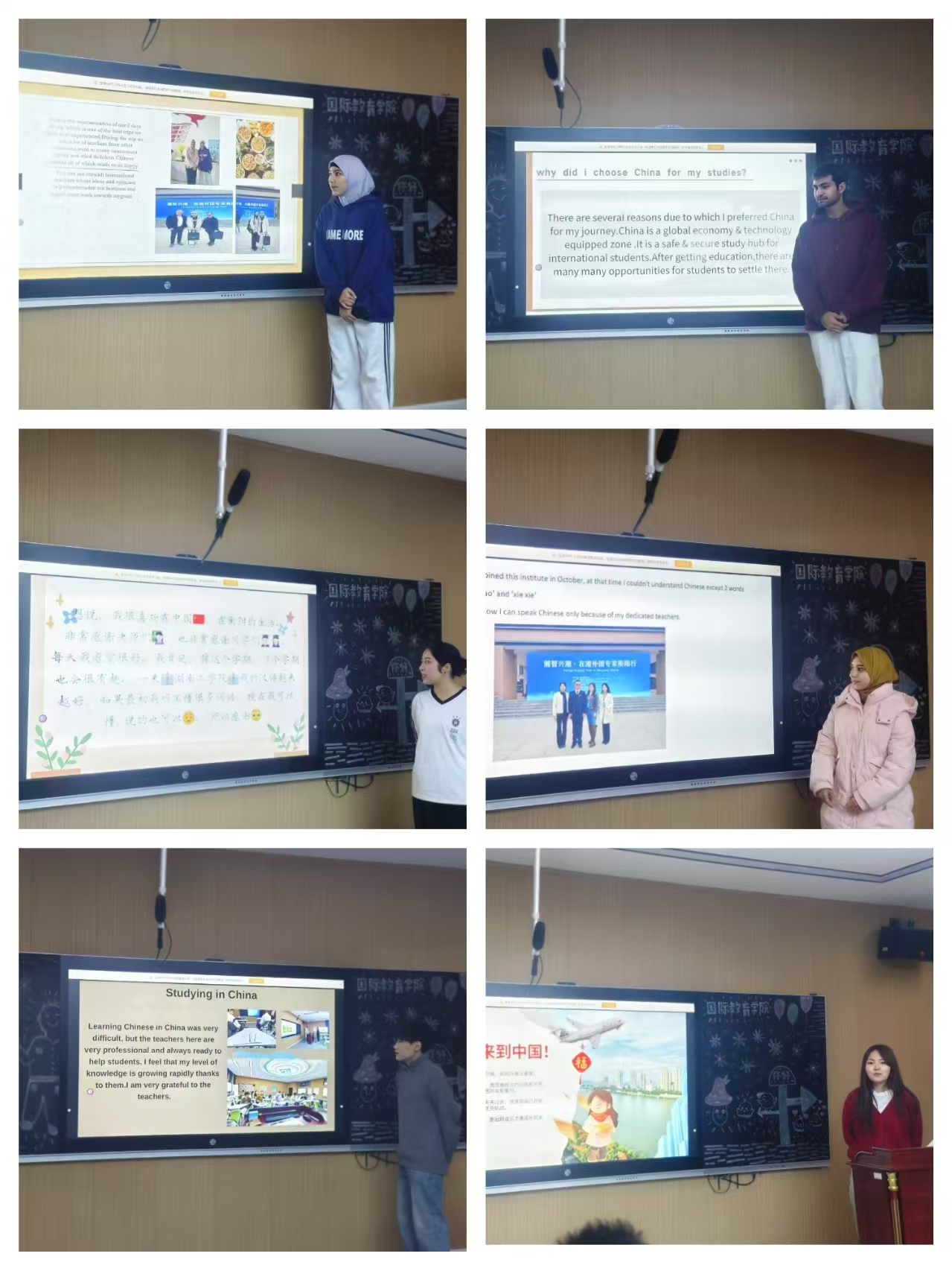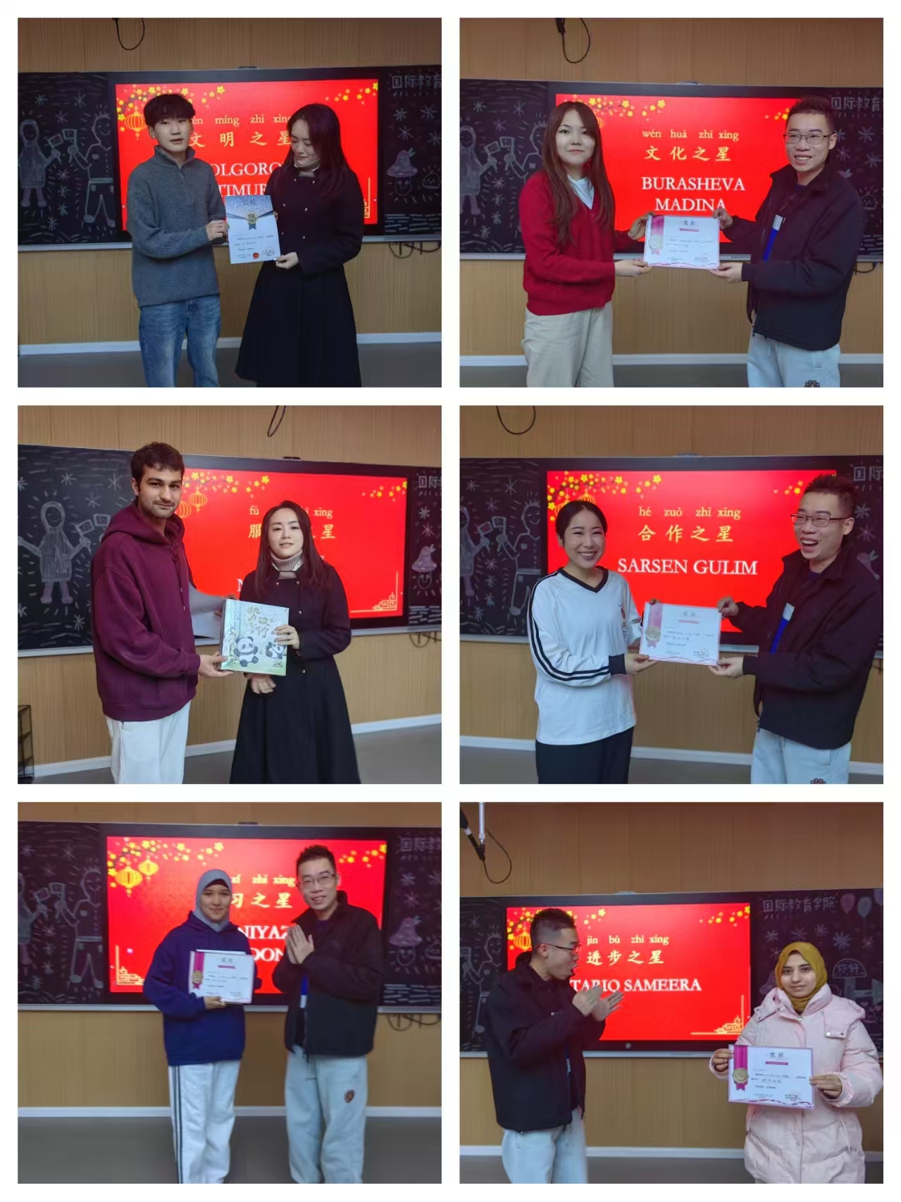 1月17日,一场别开生面的国际学生新春联谊会在社科楼207热烈举行。联谊会上,学院副院长彭艳代表学院向英国上市公司官网365首届国际学生们送上诚挚祝福,并鼓励他们继续保持勤奋学习、勇于探索的精神。在一片欢乐祥和的氛围中,学院教师为每位国际学生颁发了成绩单与新年礼物,对他们本学期的出色表现与显著进步予以表彰。活动中,学院还特别邀请了在校工作的两位外籍教师分享了在中国的学习、生活和工作经验。外籍教师详细讲述了自己在中国的学习经历和文化交流感受,鼓励国际学生们要珍惜在华学习的机会,深入了解中国文化,积极融入当地社会。随后,国际学生们纷纷上台,总结汇报了一个学期以来在校的学习和生活情况。他们分享了自己的学习心得、交友经历以及在中国度过的难忘时刻,表达了对学院和老师们的感激之情。为让国际学生们亲身体验中国春节的浓厚氛围,增进他们对中国传统文化的了解和喜爱,学院教师还为国际学生详细介绍了春节传统习俗与庆祝方式,师生们一同动手,贴春联、贴福字、贴窗花、挂灯笼,将教室装点得年味十足。