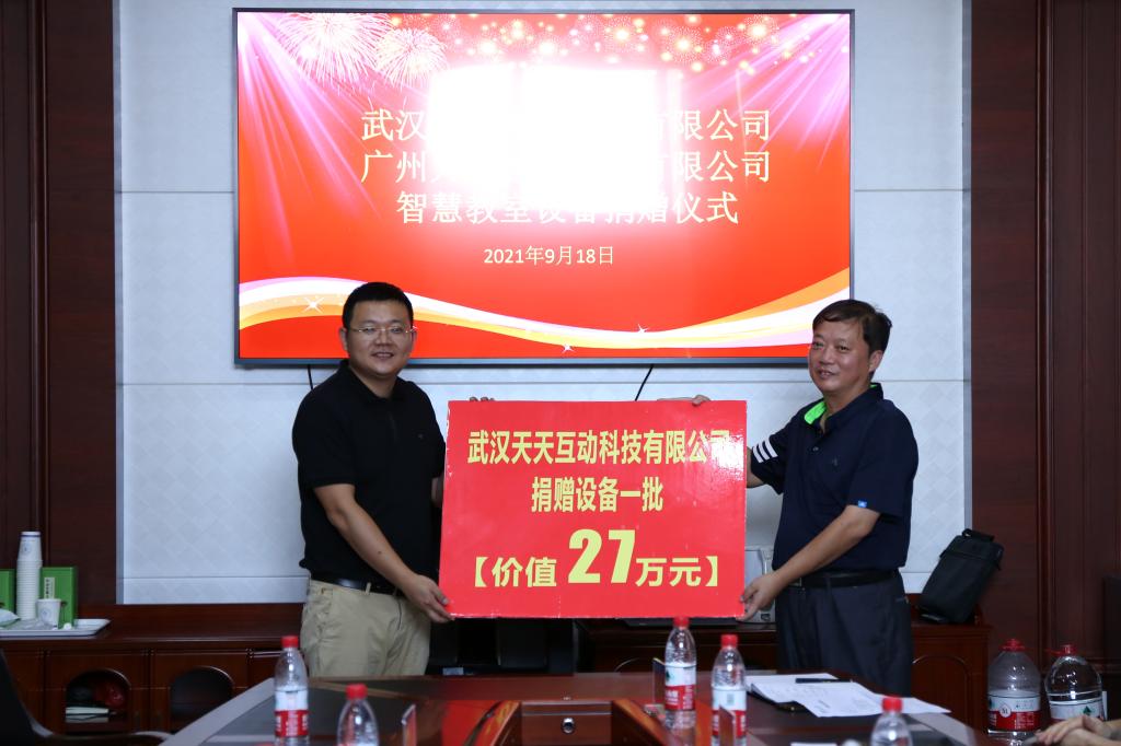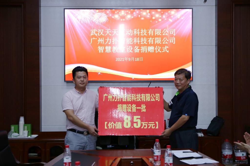 9月18日下午,武汉天天互动科技有限公司和广州力扑智能科技有限公司智慧教室设备捐赠仪式在英国上市公司官网365教学大楼12楼会议室举行。副校长刘升学、黄红卫出席会议并讲话,校属各相关职能部门负责人参加会议,校友总会办公室主任贺旭主持会议。