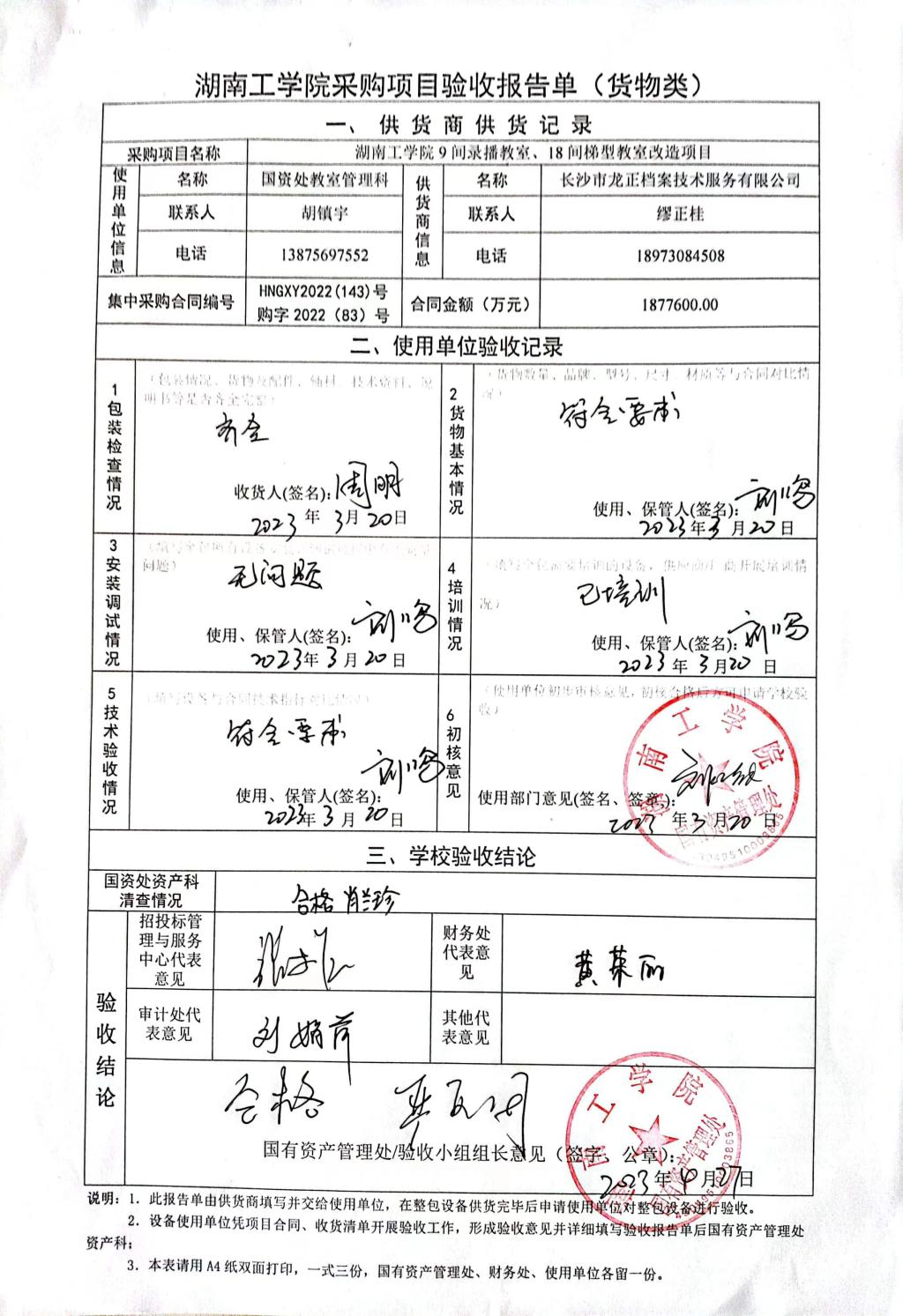 2023年4月关于HNGXY2022【143】号 购字2022【83】号采购项目验收情况公告