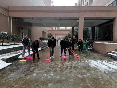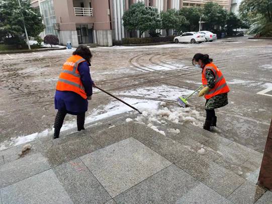 虽然天气寒冷,但大家顶着寒风、干劲十足,充分发扬了后勤人吃苦耐劳、甘于奉献的精神。经过近两个小时的奋战,扫雪任务圆满完成,为广大师生开辟了一条充满温情的通畅之路。