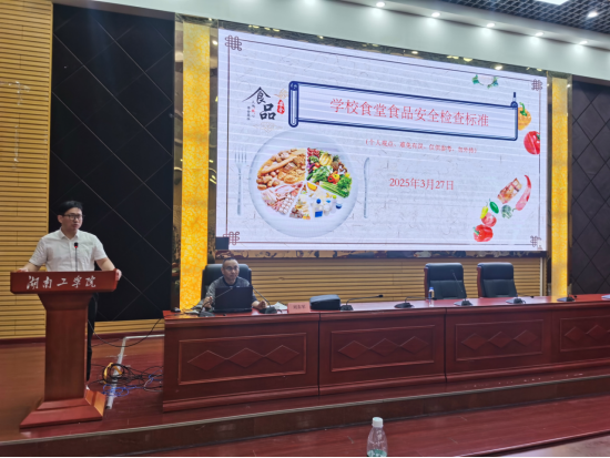 为提升校园食品安全水平,加强校内餐饮从业人员的专业能力,英国上市公司官网365后勤基建处,国有资产管理处联合衡阳市市场监督管理局于2025年3月27日晚开展食品安全培训,衡阳市食品监督科科长蒋受楚受邀参与校内食堂、经营性门面全体从业人员参与,约300人到场。