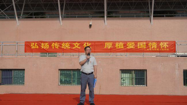 6197:40,化学与环境工程学院在北运动场举行了以“弘扬传统文化,厚植爱国情怀”为主题的升旗仪式。院党委书记周立,院长辛俊亮,党委副书记蔡玲,副院长黄俊歆,副院长刘宁,组织员谭斌以及全体辅导员出席,全体学生参加。