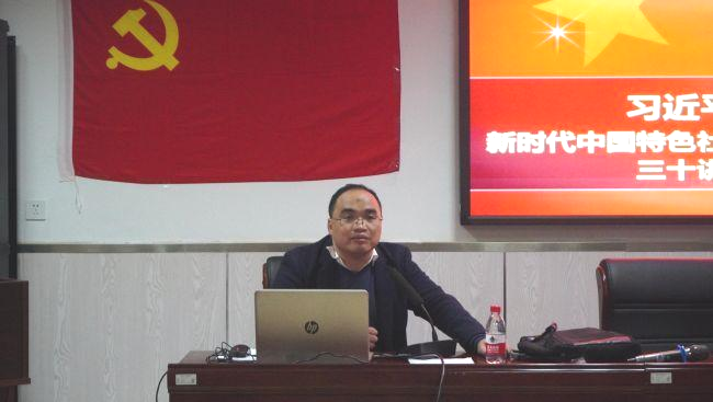 21日晚,第一堂培训课由黄建平讲解“习近平新时代中国特色社会主义思想三十讲”,他阐述了习近平新时代中国特色社会主义思想的核心要义、核心内容、理论品格,分析了管党治党实现从“宽软松”到“严紧硬”的转变,最后他嘱托所有积极分子要用党的科学理论武装自己、用党的初心使命感召自己,在全面建设社会主义现代化国家的进程中主动担当、贡献力量。
