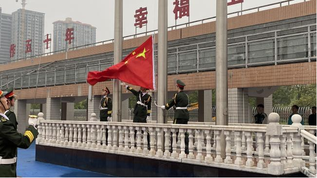 升旗仪式在雄壮的国歌声中展开,鲜艳的五星红旗冉冉升起,激励着在场的每一位师生不忘初心、勇往直前。