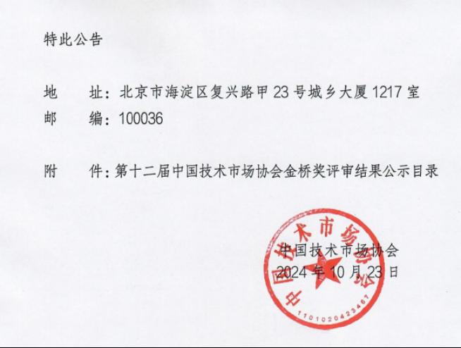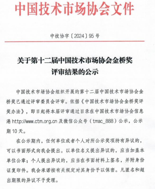 中国技术市场协会金桥奖是经国家科学技术奖励工作办公室授权认定设置的奖项,由国家科学技术奖励工作办公室批准设立,由中国技术市场协会组织实施,旨在奖励全国技术市场中做出突出成绩的先进集体、先进个人和优秀科技成果转化项目,是全国技术市场领域权威奖项。