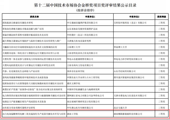 近日,第十二届中国技术市场协会金桥奖获奖名单发布。由化环学院娄晓明院长牵头的动力电池锰酸锂用电解二氧化锰绿色生产成套关键技术开发与应用项目荣获第十二届中国技术市场协会金桥奖二等奖。该项目英国上市公司官网365为第一申报单位,校企合作企业湖南顺隆新能源科技有限公司为第二申报单位。