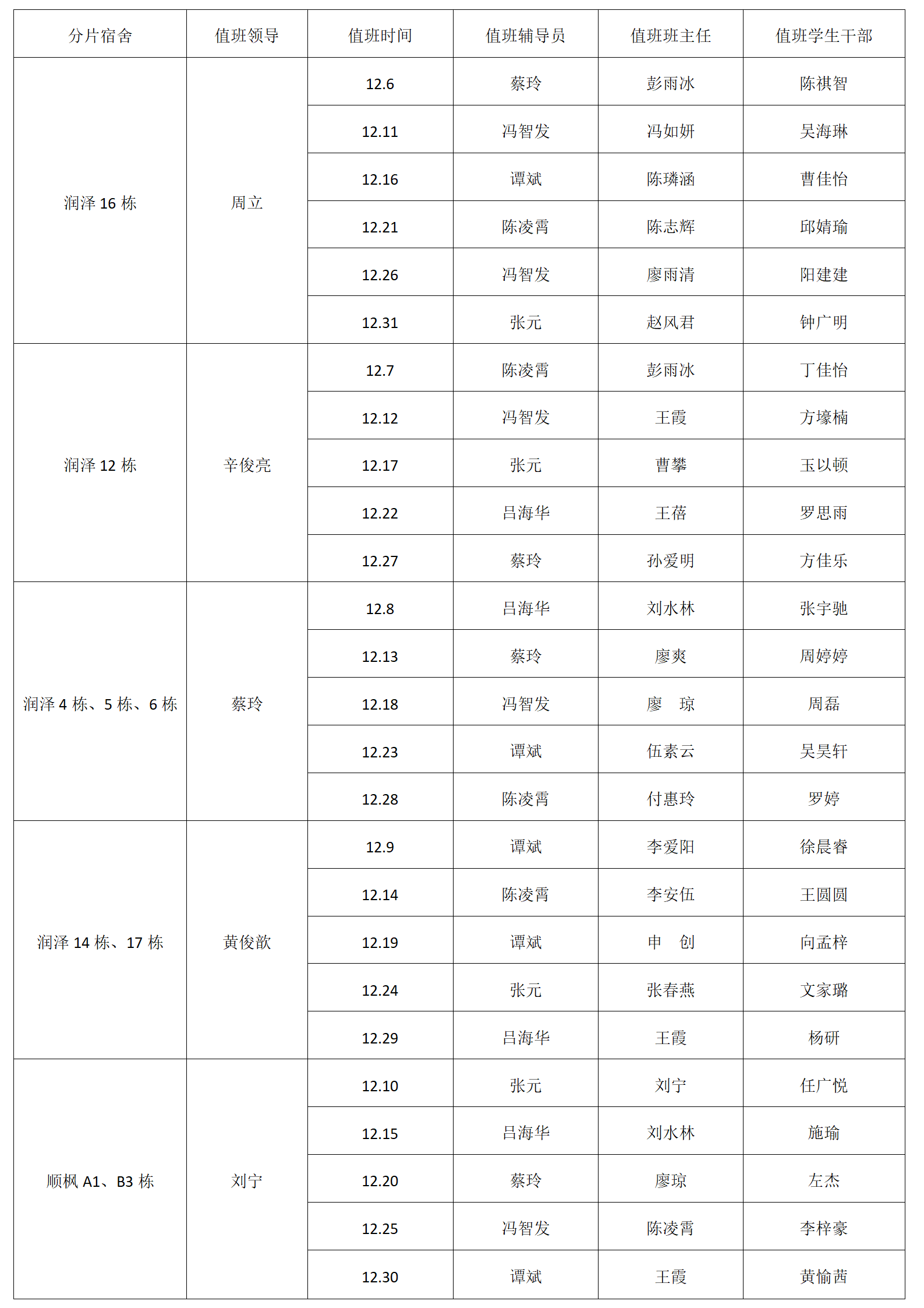 化学与环境工程学院领导干部值班及深入联系学生工作安排