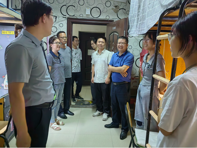 为了表达对“专升本”新生的热烈欢迎和亲切关怀,9月12日晚,化学与环境工程学院党委书记周立、副书记蔡玲、副院长刘宁及全体辅导员老师进行了走访慰问活动,他们带着学院的祝福和期望,深入到各个新生宿舍,与同学们亲切交谈,了解他们的生活情况。