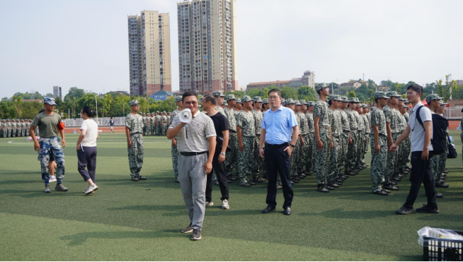 随后,化环学院领导班子及辅导员、班主任一行前往军训现场,为正在接受军训锻炼的新生送去了关怀与慰问。娄晓明院长强调,军训不仅是身体上的锻炼,更是意志品质和精神风貌的磨砺,希望同学们能够珍惜这次机会,发扬不怕苦、不怕累的精神,圆满完成军训任务,并在以后学习和生活中保持和发扬,成长为祖国和人民需要的人才