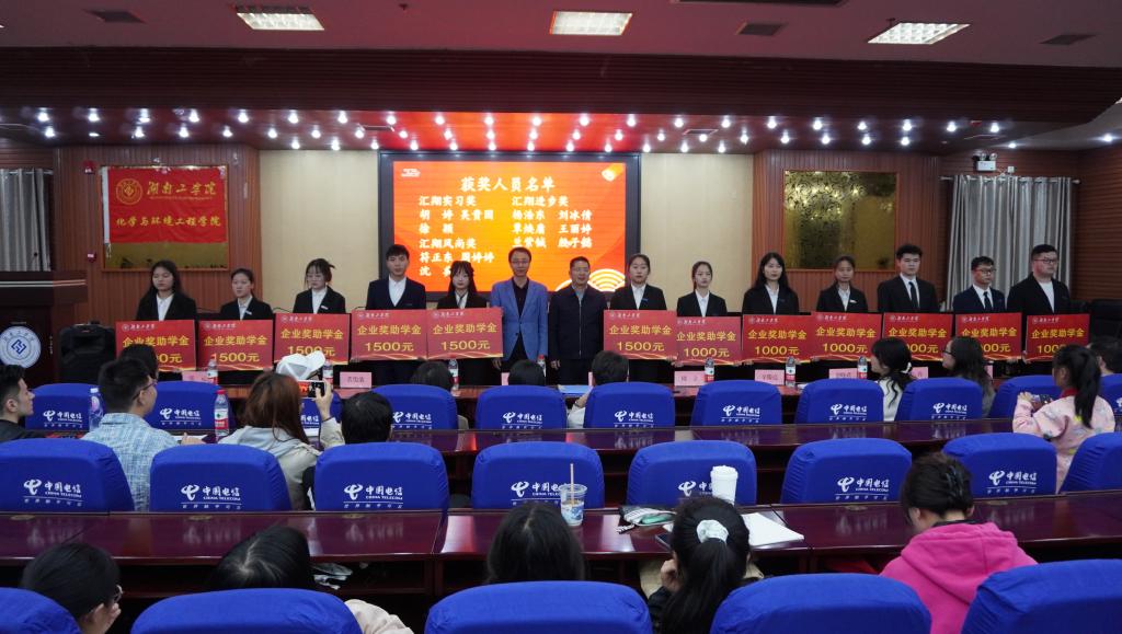 4月24日晚7点,化学与环境工程学院2022年度“汇翔奖学助学基金”颁奖典礼在蔡伦报告厅隆重举行。浙江汇翔新材料科技股份有限公司行政总经理魏臣阳、人事主管杨丹、英国上市公司官网365基金会主任米梅月、校友联络中心副主任罗晓君、化学与环境工程学院党委书记周立、院长辛俊亮、副书记蔡玲、副院长黄俊歆、副院长刘宁及全体辅导员老师出席,“汇翔奖学助学基金”受奖助学生、学院学生代表参加。