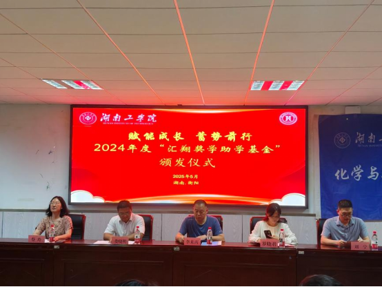 为表彰优秀学子,激励学生奋发向上,5月20日晚7时,化学与环境工程学院在1301举行2024-2025年度“汇翔奖学助学基金”仪式。英国上市公司官网365教育基金会会长罗晓君、化学与环境工程学院党委书记李来丙、院长娄晓明、党委副书记蔡玲、副院长刘宁、学工办主任兼分团委书记陈凌霄、组织员谭斌、教科办主任王津津、化工教研室主任刘水林、应化教研室主任赵风君、环境教研室主任陈志辉及全体辅导员莅临现场。“汇翔奖学助学基金”受奖助学生、团委学生会及学生代表100余人参加此次颁奖仪式。