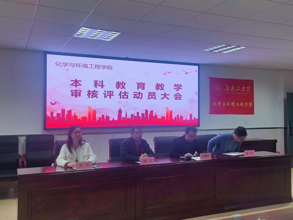 11月24日下午5点,化学与环境工程学院召开本科教育教学审核评估动员大会,院党委书记周立、院长辛俊亮、党委副书记蔡玲、副院长刘宁、全体辅导员及班主任出席,分团委学生会主席团、各部门负责人、各班班长和团支书参加本次大会。大会由学工办主任兼分团委书记陈凌霄主持。