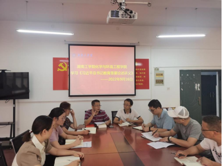 2022916日下午,化学与环境工程学院党委在1310召开《习近平总书记教育重要论述讲义》学习座谈会,会议由学院党委书记周立同志主持,院党委全体成员参加了学习。