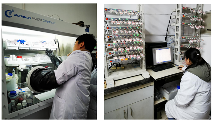 学生动手制作锂离子电池                      学生对自己制作的电池进行性能测试
