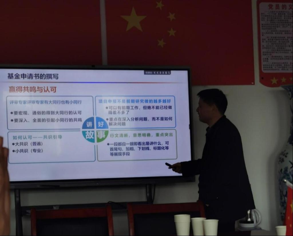 2023年3月6日,学院邀请湖南大学陈小华教授来校做了题为《撰写自科基金的一些思考》专题报告。陈教授强调首先要树立信心,确定一个既有重大意义又有较大创新的选题;其次要充分调研文献资料,找准关键科学问题;然后针对关键科学问题,提出创新性解决方法。并结合多个案例对自科基金申请书每个部分的写作方法进行了深入讲解,对容易出现的问题做了详细说明,对老师们提出的问题做了逐项解答。