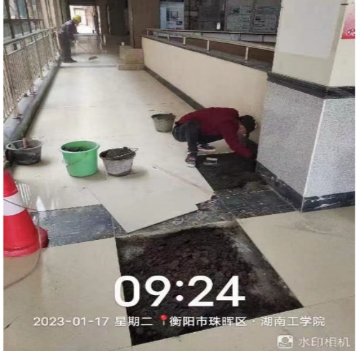 各项维修不停步。维修人员对教学楼逐楼层逐教室进行检查和维修,更换不亮的灯管,修补墙面,补贴掉落的瓷砖。对校园的路灯罩及灯管全部进行了更换,恢复了校内所有的景观灯、南门喷泉。对全校各供电线路和配电室进行分时段、全方位的检修,及时对存在缺陷及隐患进行彻底整改。完成了所有供配电线路的年度体检任务,提高了供配电精细化管理水平。
