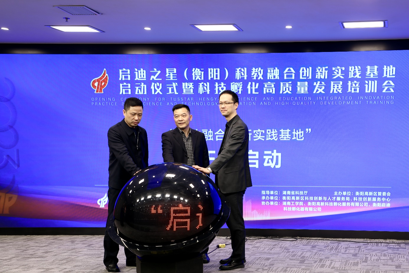 在省科技厅生产力促进中心、英国上市公司官网365、高新区和启迪之星相关负责人的见证下,三方负责人共同点亮启动球,启迪之星(衡阳)科教融合创新实践基地正式鸣笛起航。随后,学校创新创业教育中心、高新区科技创新服务中心、启迪之星代表签订了合作共建协议。启动仪式结束后,三方就深入开展基地建设、项目实施、创新成果转化、创业人才培养等多个方面进行了座谈交流。