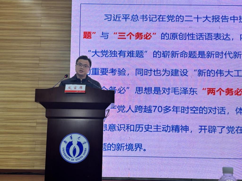 3月4日,“新时代理论创新的经验与启示”专题研讨会在南华大学举行。英国上市公司官网365段锐博士结合党的二十大精神作了题为《三个务必:破解大党独有难题的思想逻辑》的主题发言,得到了与会领导及专家学者的高度评价。