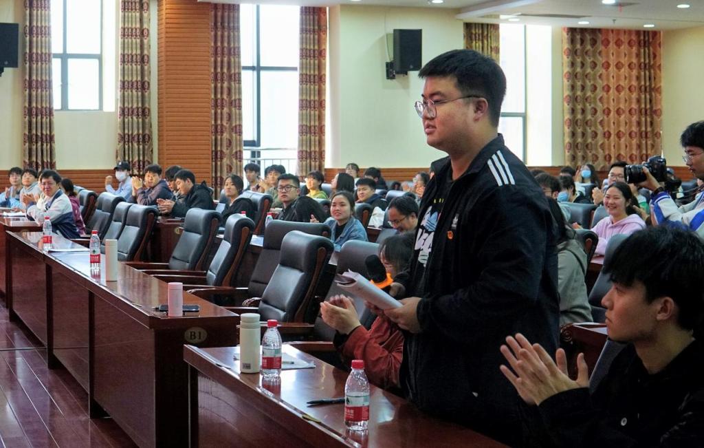 老师们的分享赤诚动情,同学们的思绪迸发奔涌。活动现场,互动频频,“大学生如何充分发挥其学科专业优势投身乡村振兴呢?您在创业过程中,遇到的最大困难是什么?又是如何坚持和解决的呢?”“您从北京回来以后,又是如何继续做好衡阳的宣传者和讲解员的呢?”“对于提升当代大学生的文化自信,您还有哪些比较好的建议?”……每一位老师分享后都会启发同学们提出一系列问题,党的二十大精神在师生对话中入脑入心。