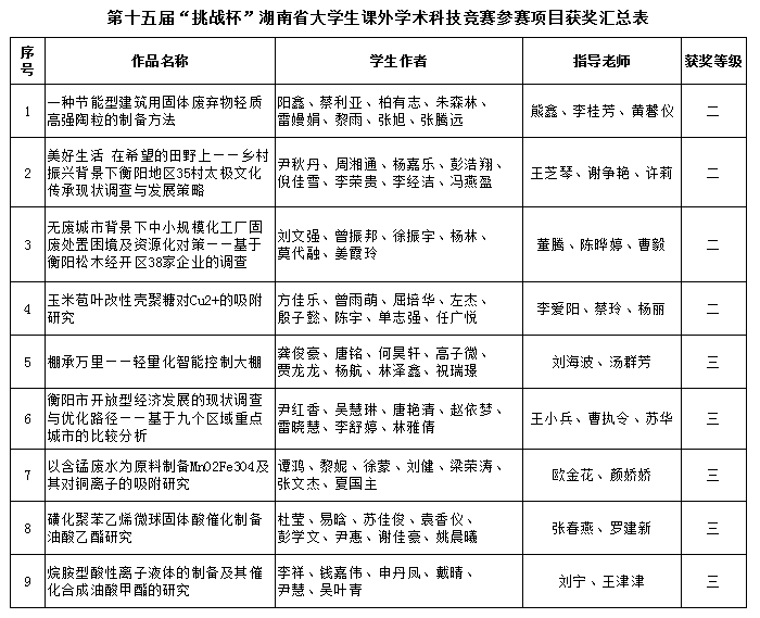 英国上市公司官网365学子在第十五届“挑战杯”湖南省大学生课外学术科技作品竞赛中获奖