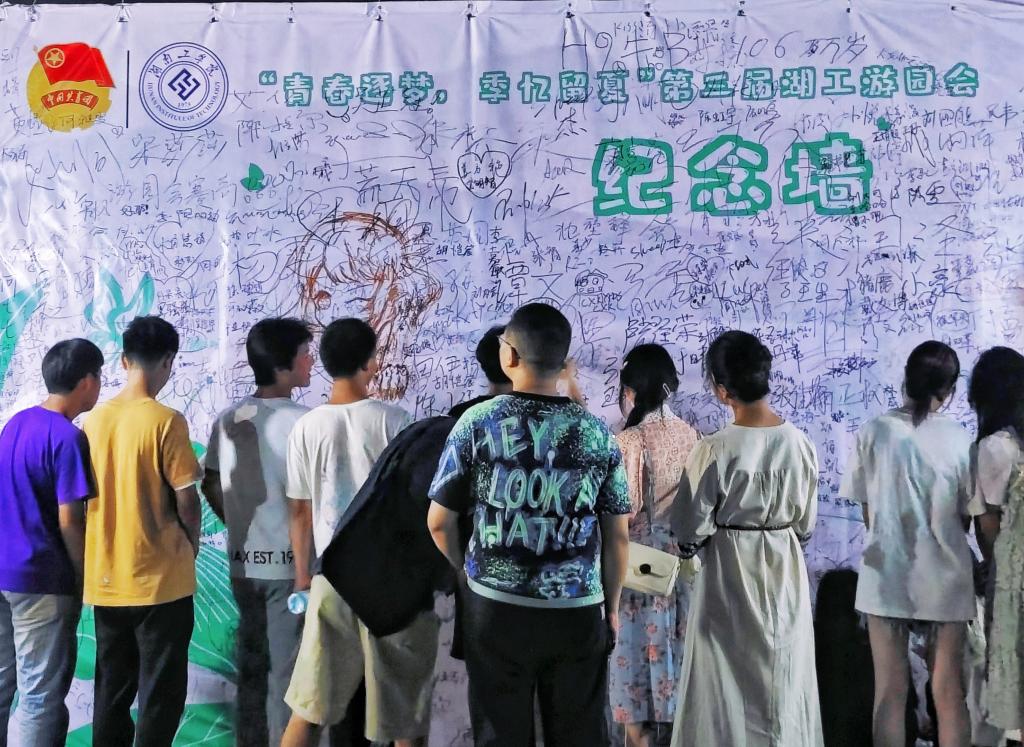 毕业生们纷纷在签名墙前用笔与镜头“花式”见证自己的毕业时刻,主办方现场为毕业生发放600余份专属湖工文创纪念品。“我们希望通过这一次的游园会活动让同学们更好地享受校园、享受夏天、享受青春!”活动负责人、物联网工程2102班姜俊杰同学说。