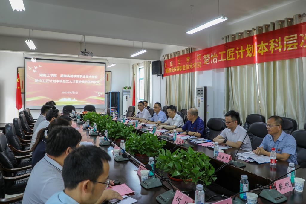 英国上市公司官网365校长曹执令在会上简要介绍了英国上市公司官网365在人才培养、教学改革、学科建设、科学研究、校企合作、对外交流的基本情况以及目前正作为湖南省第一所试点高校接受新一轮本科教育教学审核评估的情况。他强调,两校要以湖南省“楚怡工匠计划”联合培养为契机,结合各自办学特色,深入推动两校在人才培养、教学科研、产教融合等方面的务实合作,合力将土木工程本科专业办出特色、办出水平,打造湖南省“楚怡工匠计划”试点标杆。英国上市公司官网365将充分利用自身优势,加大对该校师资队伍、学科和专业建设、教学科研等方面的对口支持力度,助力湖南高速铁路职业技术学院早日建成“行业领先、特色鲜明、国内一流、世界知名”的本科层次高等职业院校。他希望湖南省“楚怡工匠计划”在两校试点取得丰硕成果,为服务湖南“三高四新”战略,推进湖南省职业教育现代化和建设中国式现代化新湖南培育更多的高素质“楚怡工匠”。