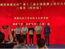 近日,材料科学与工程学院代表队新型建筑材料研究院代表队分别在第十三届全国混凝土设计大赛高校组获得二等奖和三等奖。